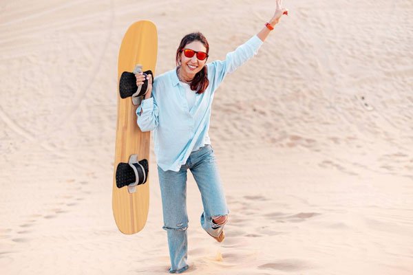 You can wear any comfortable outfit. T-shirts with jeans or joggers are the best option if you want to participate in the activities without any hassle. Also, carry a light jacket or a scarf since the desert temperature drops in the evening.