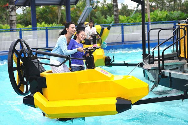• Build your own raft with Lego bricks and glide down the water slide on it.